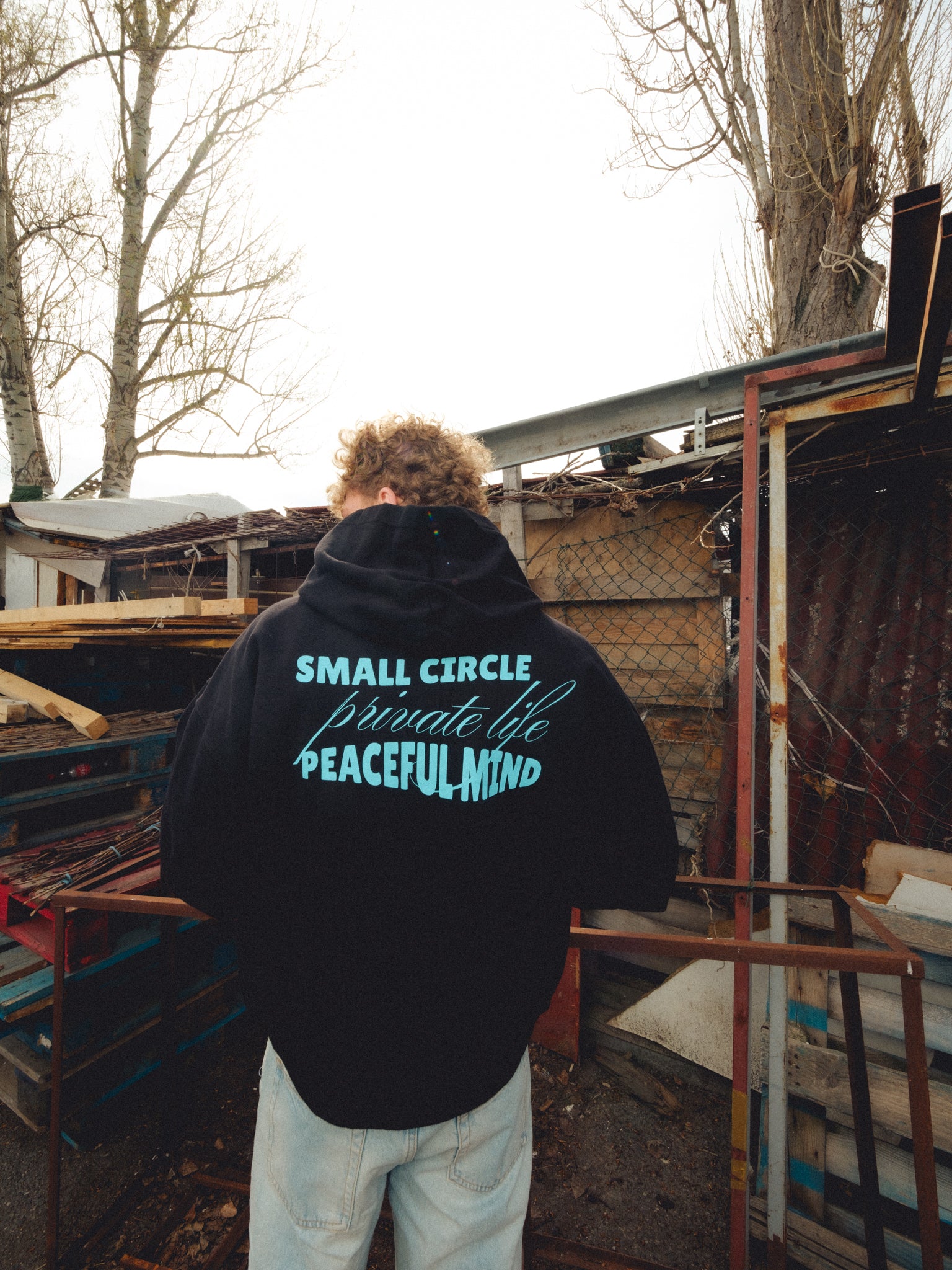 Small Circle Private Life Peaceful Mind Unisex Oversized Hoodie - Black
